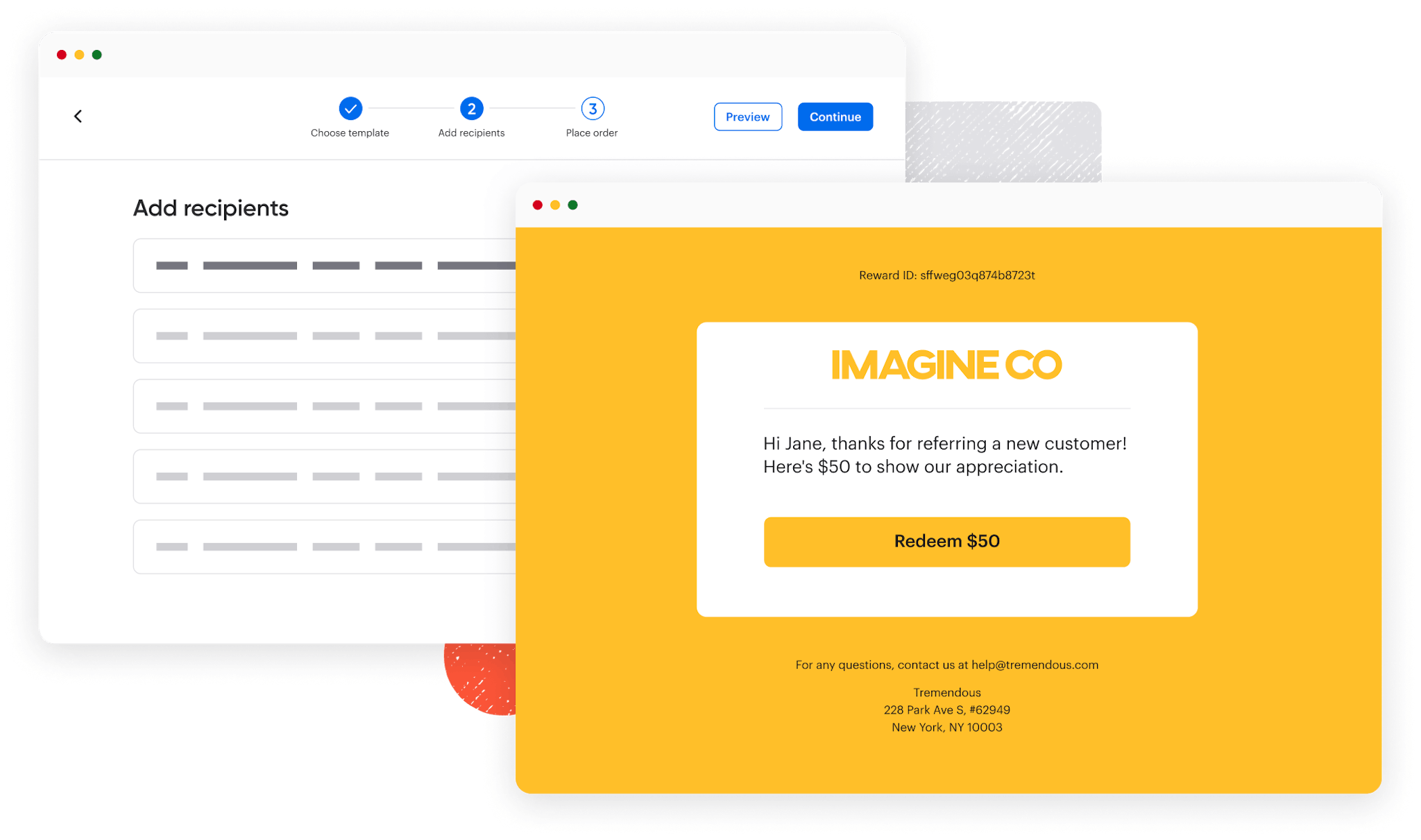 The simple, secure way to buy and send gift cards is with Tremendous. Choose from 2,100 retailer options without having to purchase from multiple sites. Send a dozen or a million corporate incentives in minutes, for free. Plus, track what you’ve sent and spent straight from our dashboard with downloadable reports.
